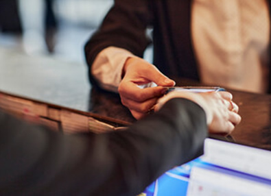 建物に入る従業員の確認や業者の入館手続きなど、来訪者の身分確認や入退室記録を管理し、施設の安全を守ります。